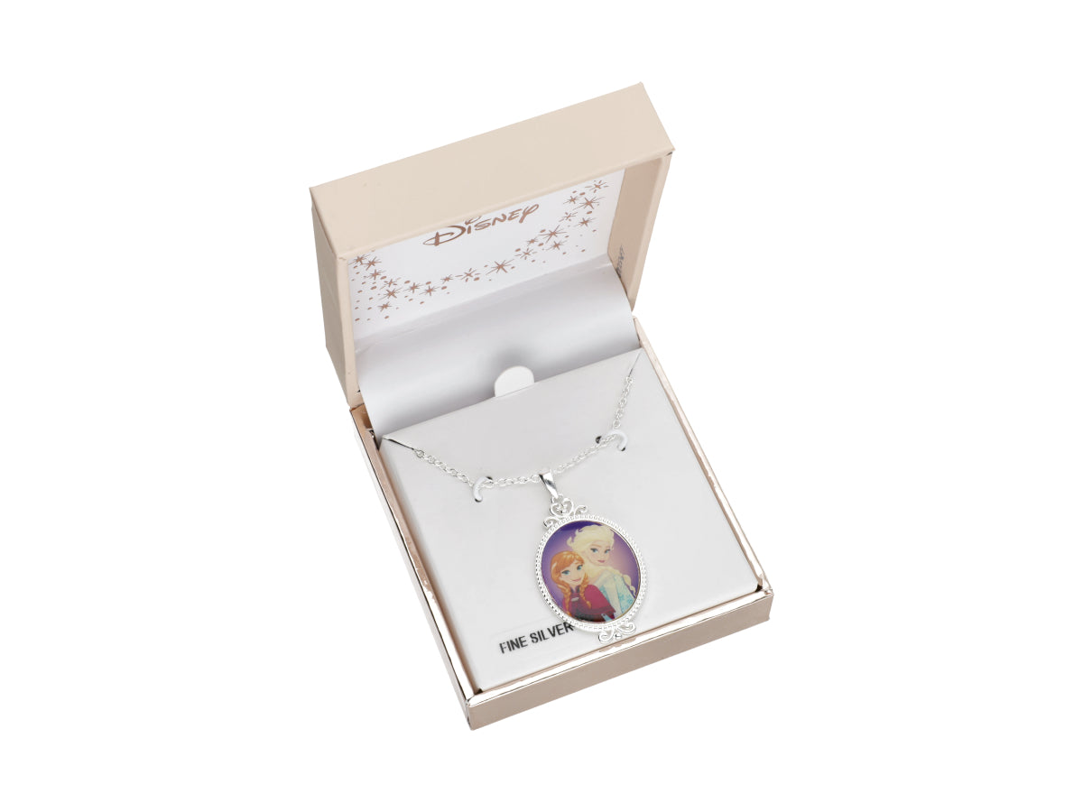 Collar con colgante de princesas Elsa y Anna Disney enchapado en plata.