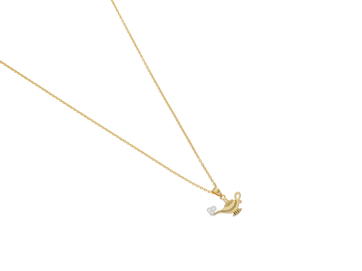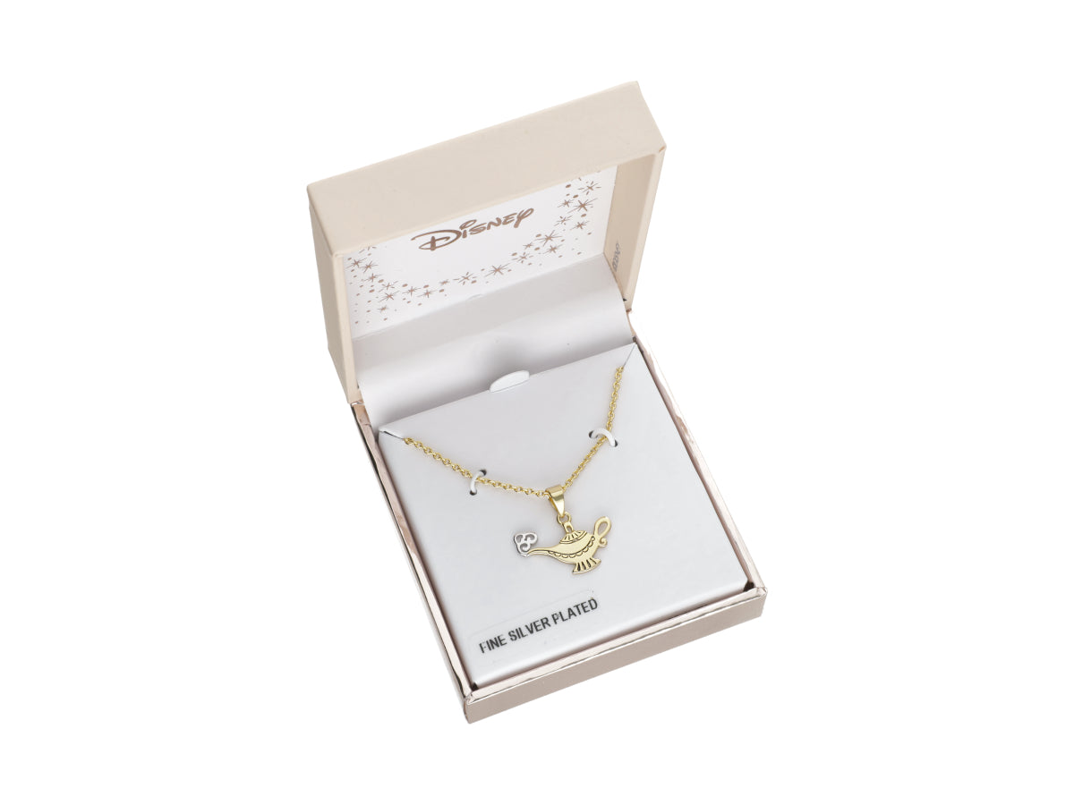 Collar con colgante enchapado en oro en forma de lámpara de genio de Aladdin de Disney.