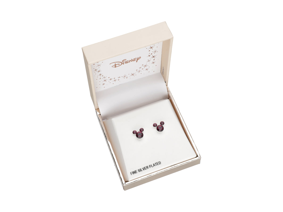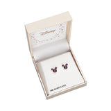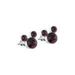 Caravanas enchapadas en Plata con diseño Mickey y circonias color violeta.