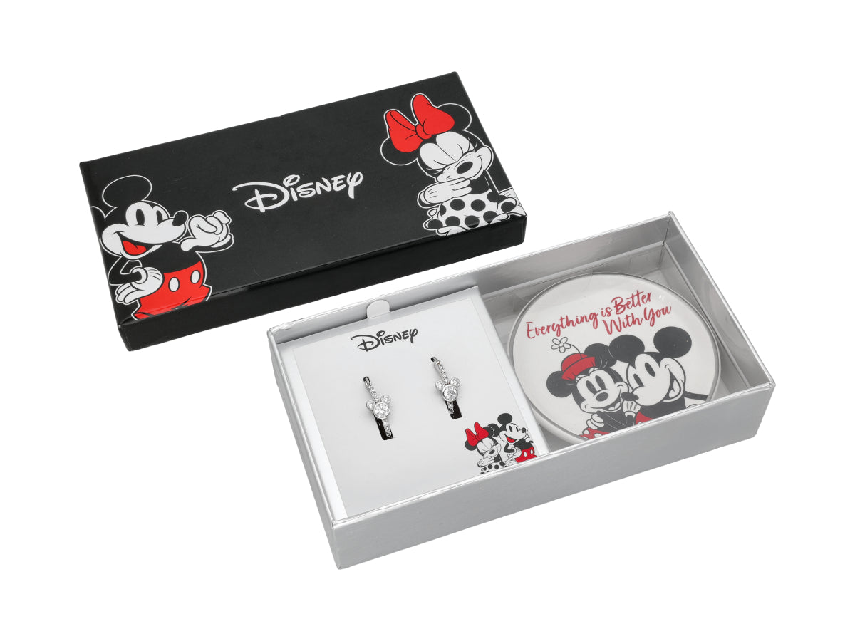 Caravanas en Plata 925 con diseño Mickey central y circonias.