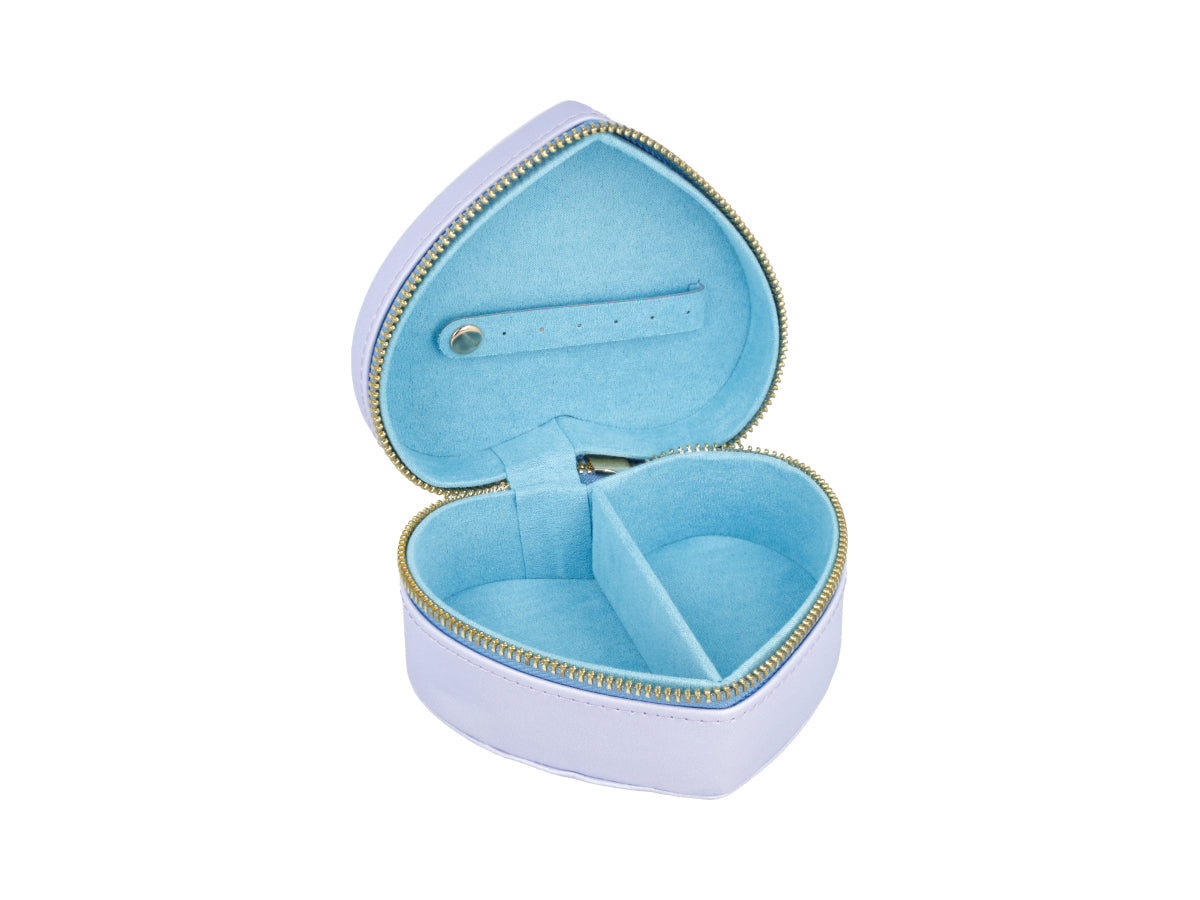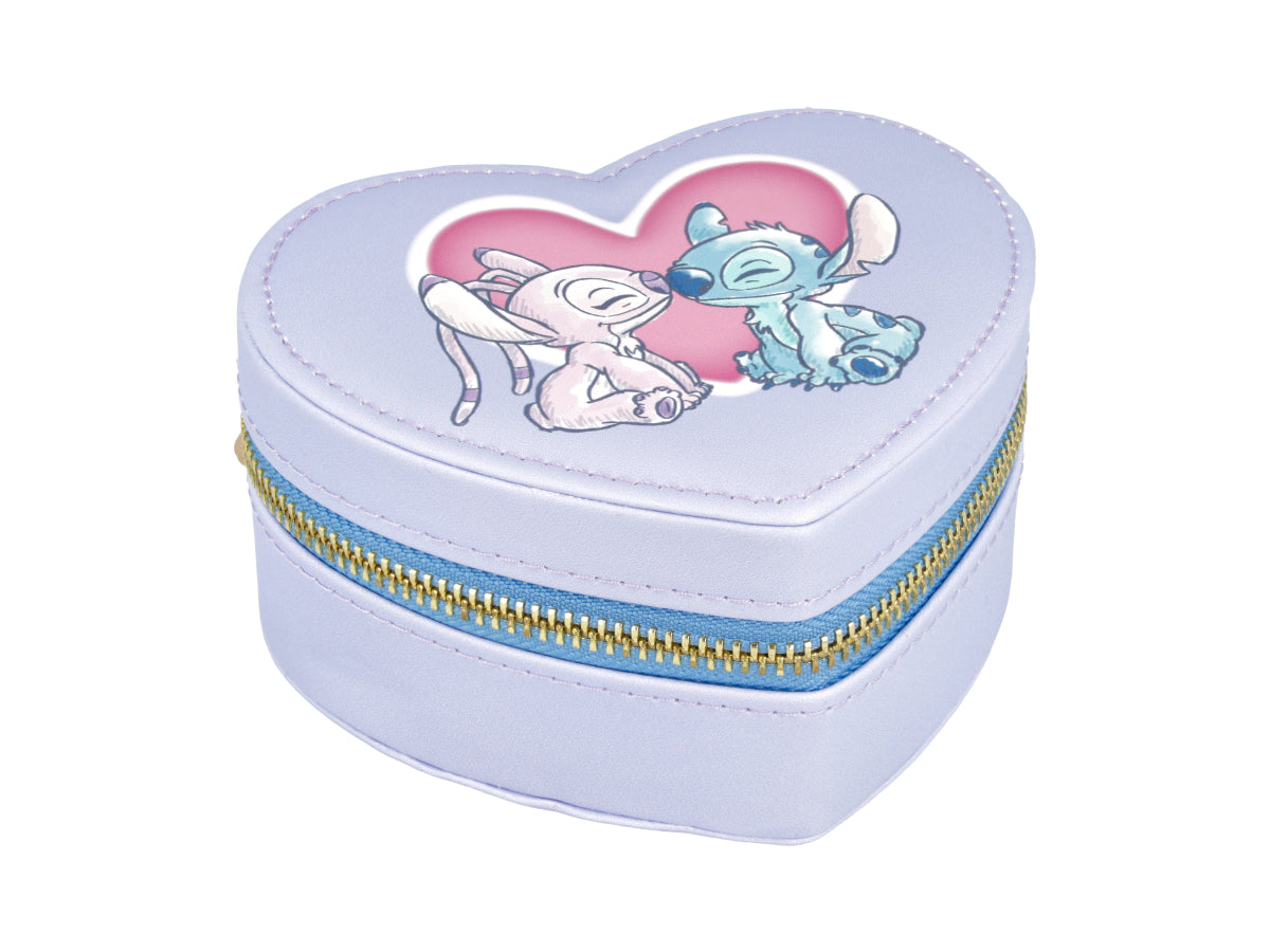 Alhajero de cuero sintético en forma de corazón y diseño de Angel y Stitch en la parte superior.