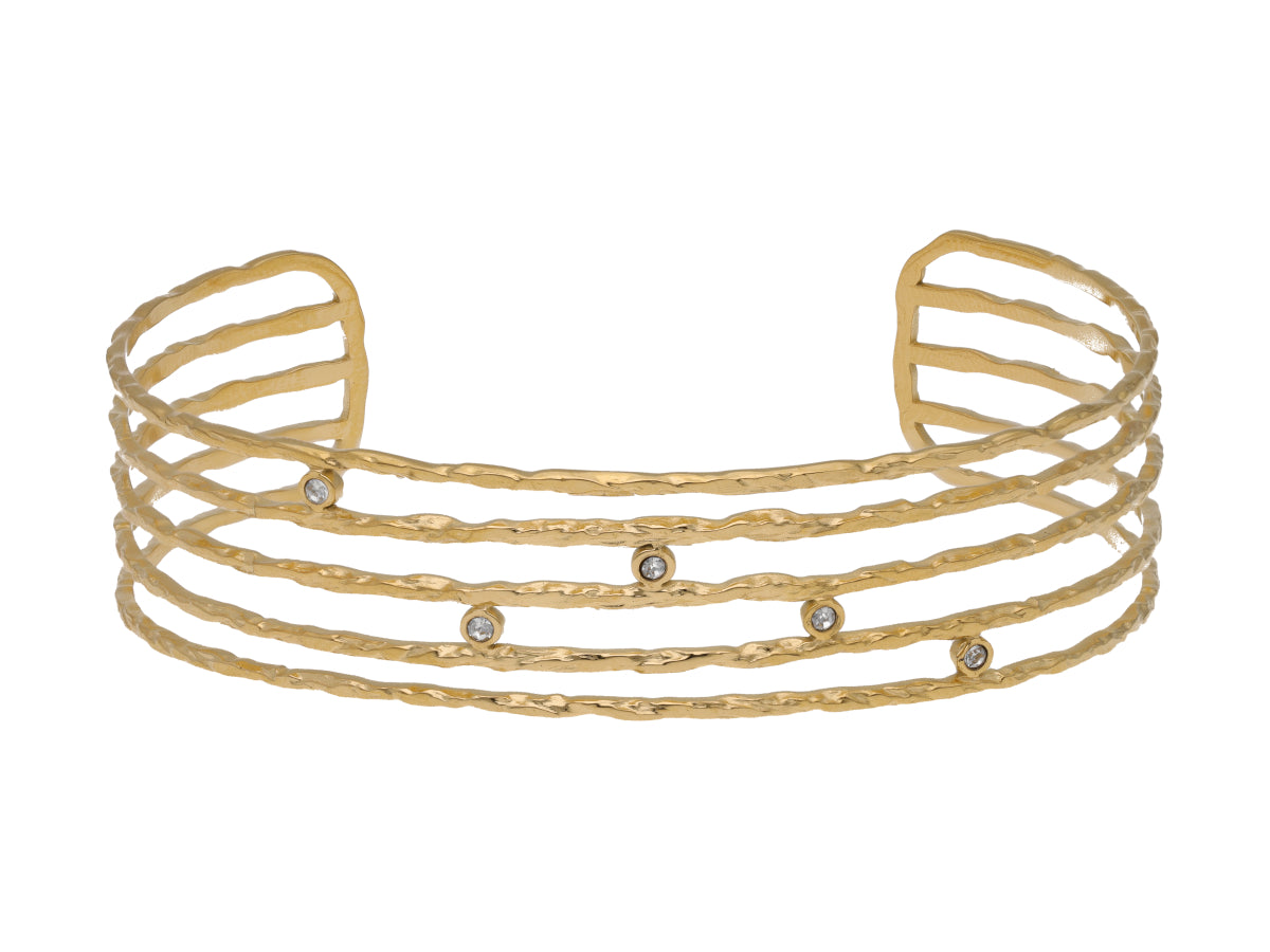 Esclava de acero abierta con baño de oro y circonias.