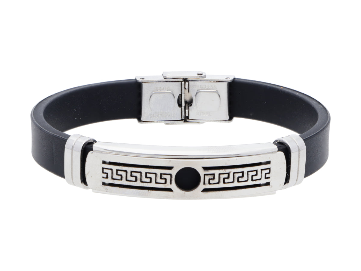 Pulsera de Acero Italiano y goma con diseño de guarda griega.