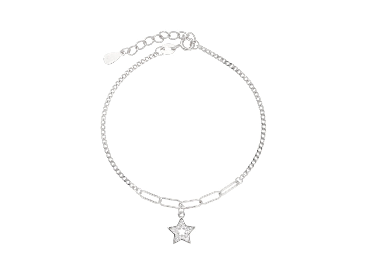Pulsera de plata 925 con dije de diseño estrella y circonias.