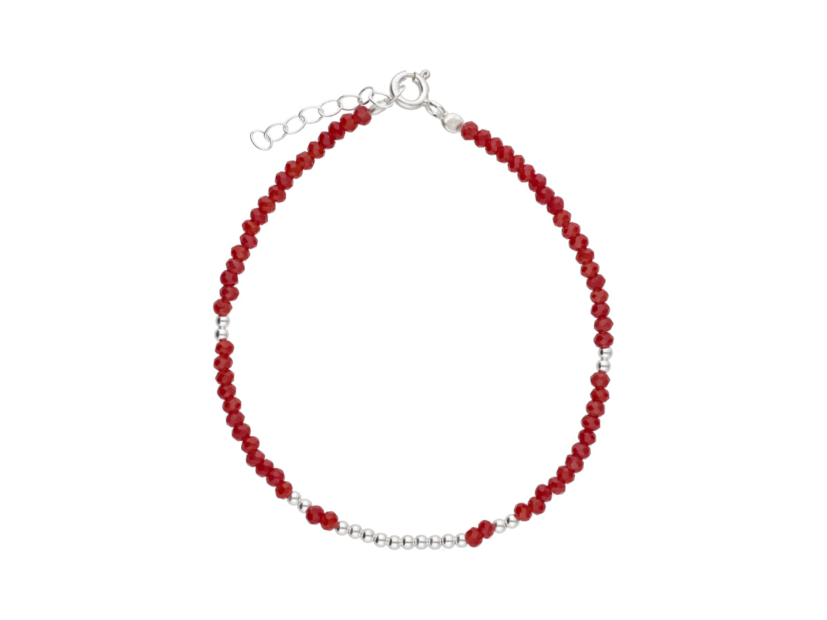 Pulsera de cristal en color rojo plata 925 con diseño de bolitas.