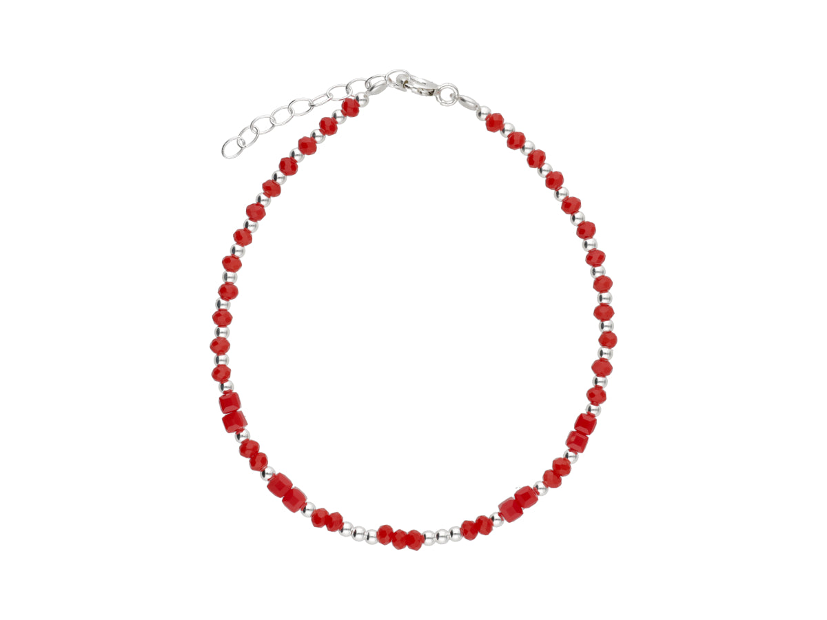 Pulsera de cristal en color rojo plata 925 con bolitas.