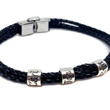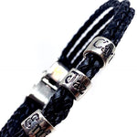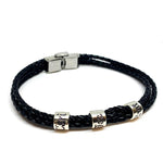 Pulsera de cuero trenzado Negro o Blanco con donas de plata 925 grabadas.